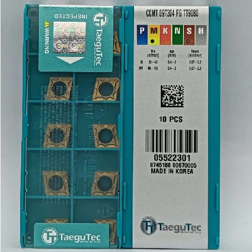✔️ TT9080 – cấp carbide phủ PVD cao cấp của TaeguTec, cung cấp sự cân bằng tốt giữa chống mài mòn và chịu tải, dùng đa dụng cho nhiều vật liệu như thép, inox và gang. Terui CNC