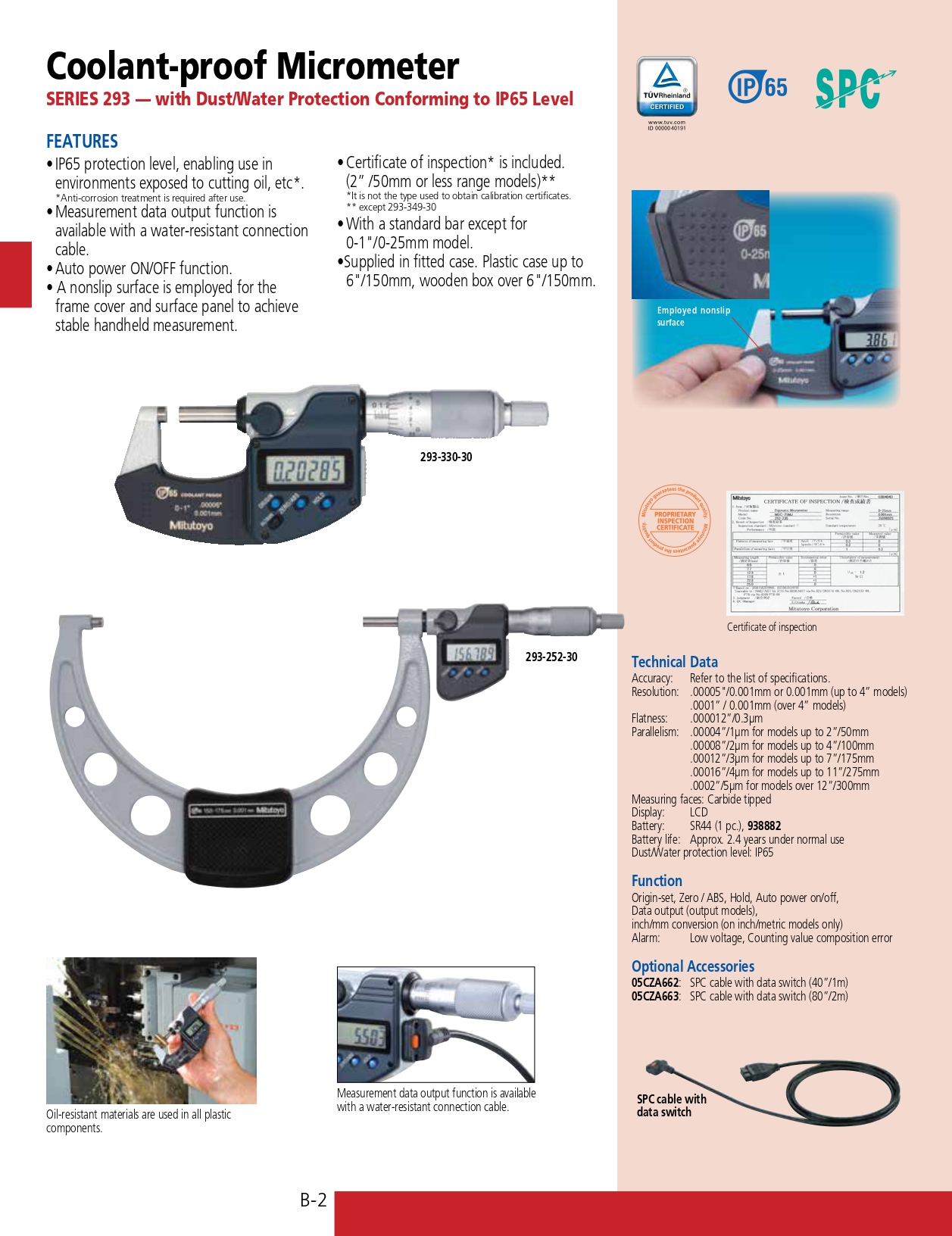 1″ – 2″/ 25.4 – 50.8mm .00005” / 0.001mm 293-345-30* ±.00005″